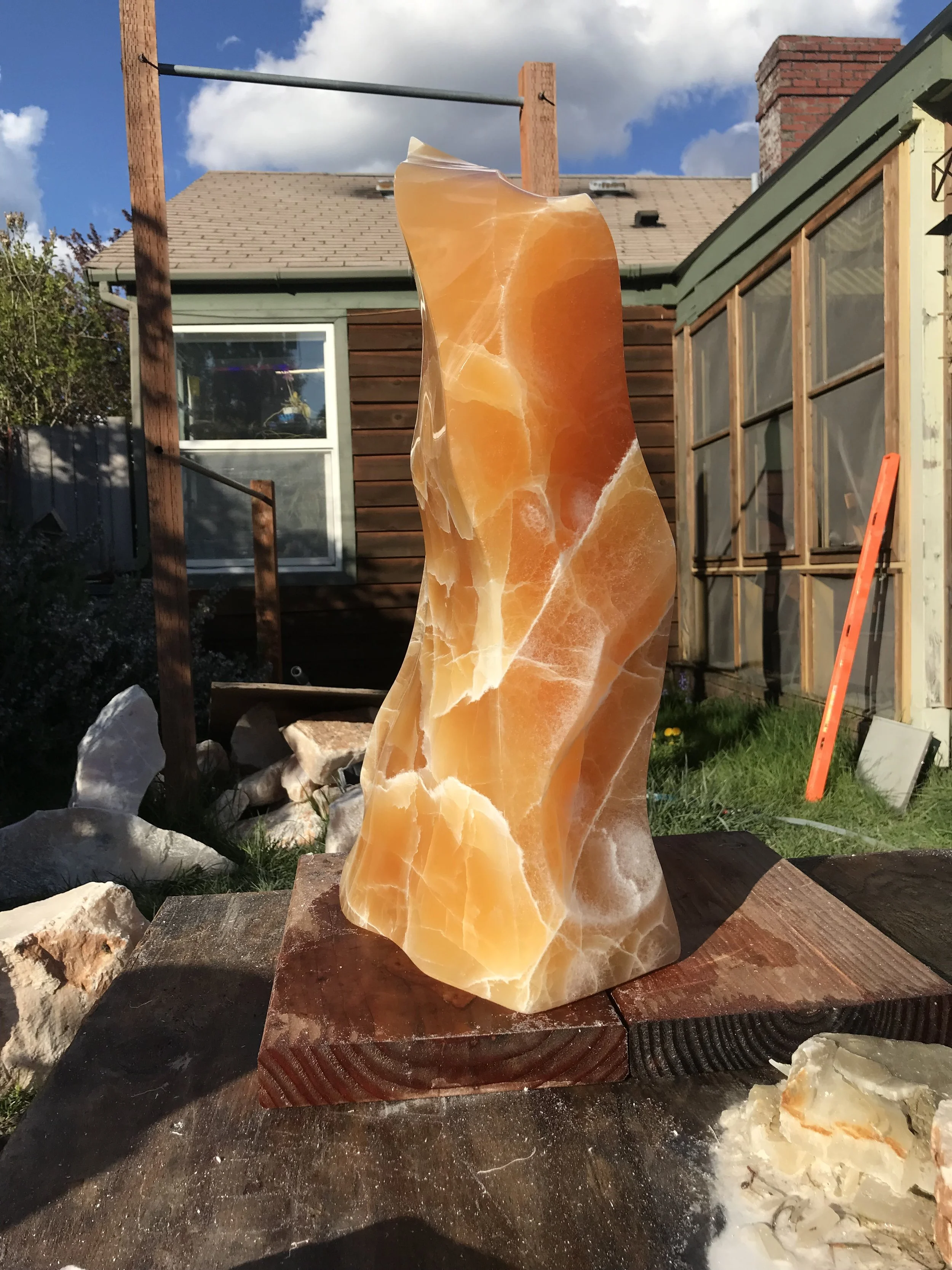 This work embodies the movement of elements when fire pulls in air as it consumes fuel. Flames don’t sit still well and this calcite doesn’t appear to either.